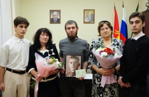 В День героев Отечества председатель Совета народных депутатов муниципального образования «Город Майкоп» А.Е. Джаримок торжественно передал родным ветерана ВОВ, участника героической обороны Кавказа Амина Темиркановича Берзегова удостоверение к ордену Красной Звезды.